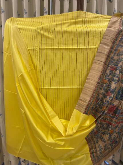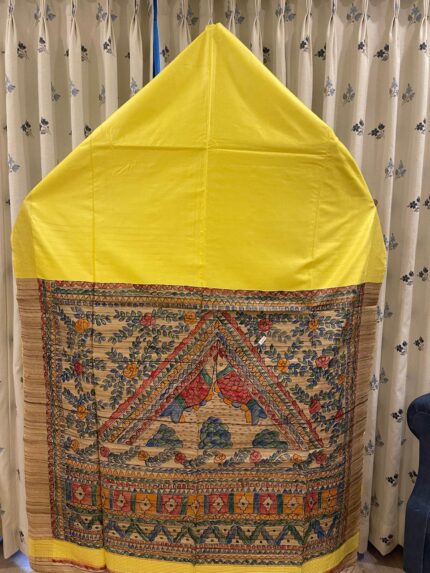 Pure gheecha Tussar silk with hand Madhubani paint.