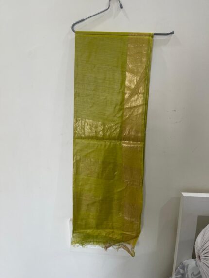 Golden mustard pure Tussar with tissue border and contrast blouse piece