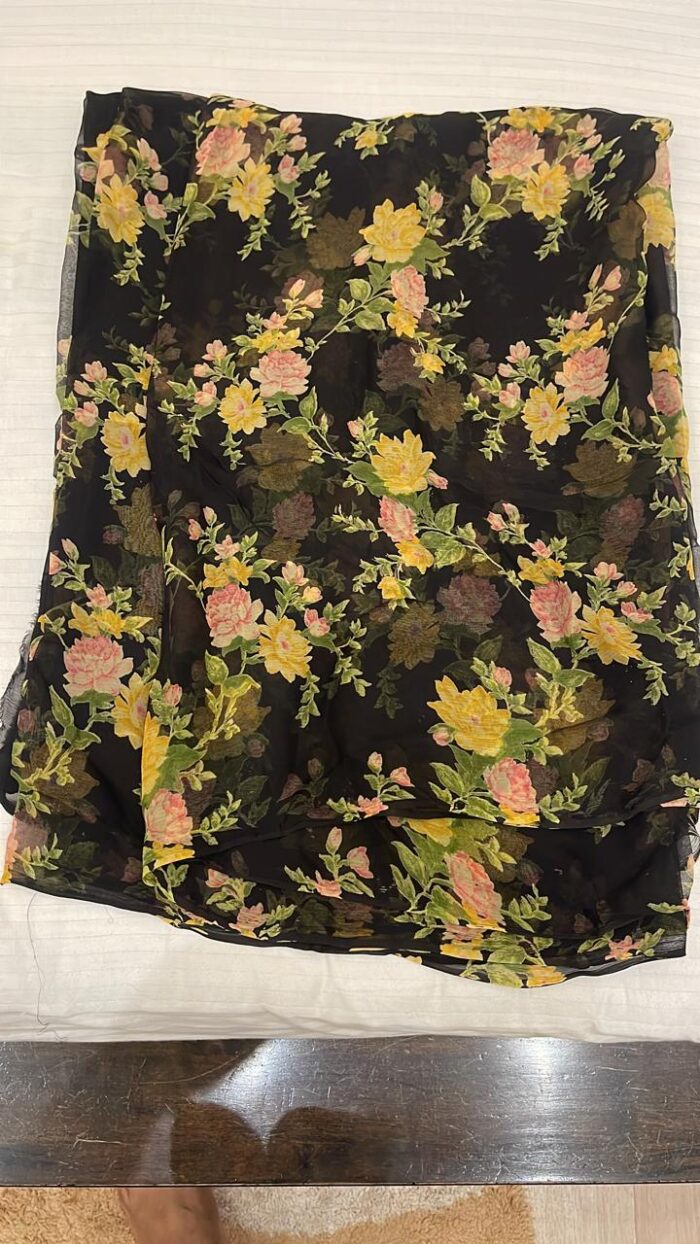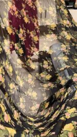 Turn heads with this black chiffon saree, featuring vibrant digital prints that add a contemporary and stylish touch. The lightweight, flowy chiffon drapes beautifully, making it perfect for parties, evening outings, or festive occasions. Effortlessly blending modern design with classic elegance, this saree offers a chic and versatile addition to your wardrobe.