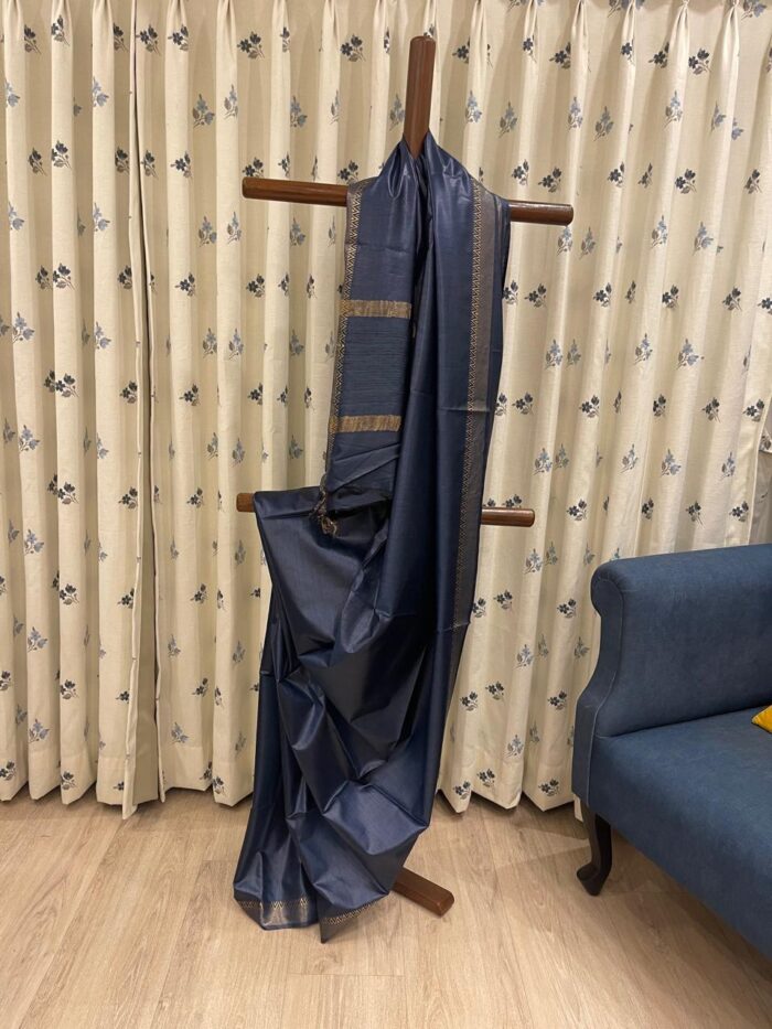 Pure Tussar with jari skirt border and cotton silk blouse piece.