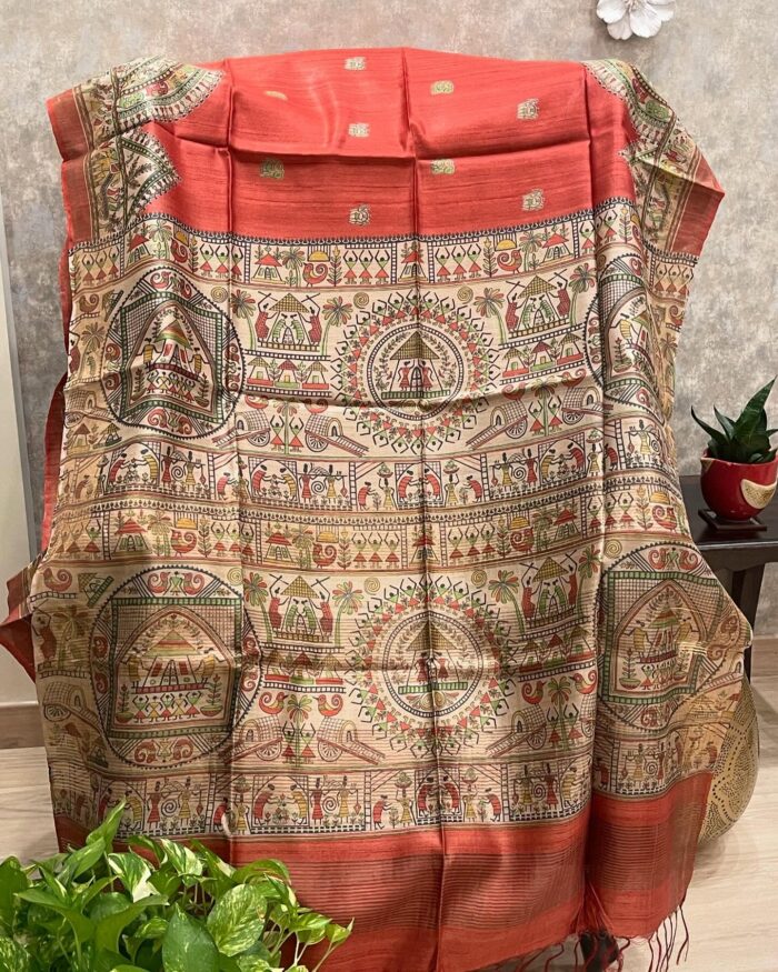 Experience the timeless elegance of tradition with our Pure Desi Tussar Silk Saree. Crafted from authentic Tussar silk, renowned for its rich texture and natural sheen, this saree brings a touch of sophistication to any occasion. Lightweight yet luxurious, it drapes gracefully, making it perfect for festivals, weddings, or formal gatherings. The fabric’s natural breathability ensures comfort, while the subtle lustrous finish adds a royal charm to your look. Pair it with your favorite jewelry for an effortlessly elegant appearance.